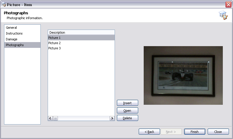 You can also enter special instructions for the item, record any damage and attach external photographs from an external source such as a digital camera or mobile telephone.
