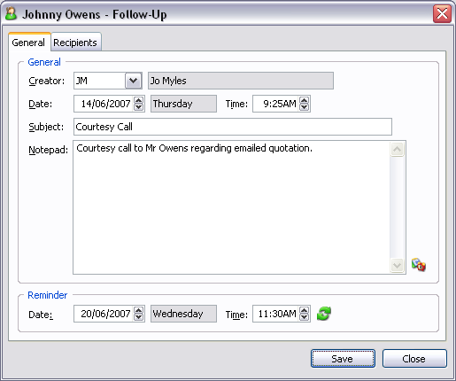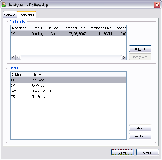 You can now create follow-ups for any circumstance, and apply the follow-up reminder to any member(s) of staff.