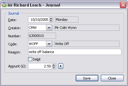 The entry of journals is a welcomed addition to the system, and is the ideal tool for writing off those small account balances that are not worth raising invoices/credits for, and therefore will not affect your turnover reports.
