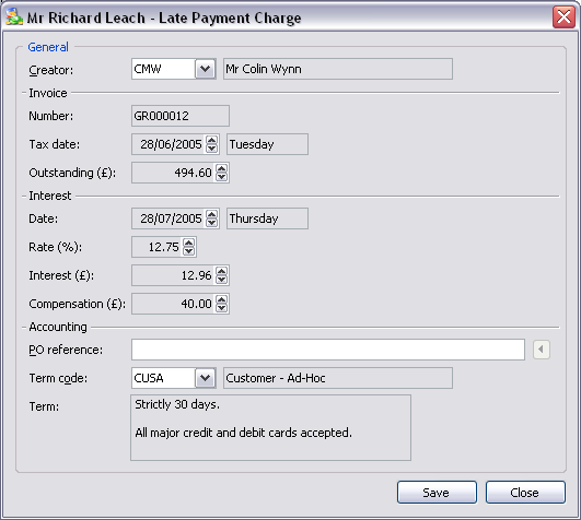 By storing within Move Administer the bi-annual interest rates, together with credit period and compensation charges, at the click of your mouse pointer you can automatically raise an ad-hoc invoice for the interest on the debt, together with a late payment compensation charge.